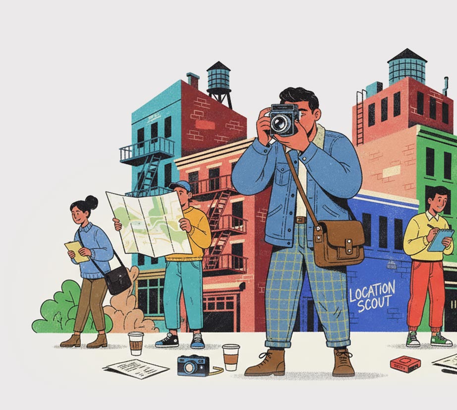 We are a dedicated location scouting team supporting film and photo productions in finding the perfect shooting spot. We scout on location, check access, parking, lighting conditions, surroundings, restrooms and every other detail your production needs. Our goal: smooth workflows and inspiring locations for creatives.